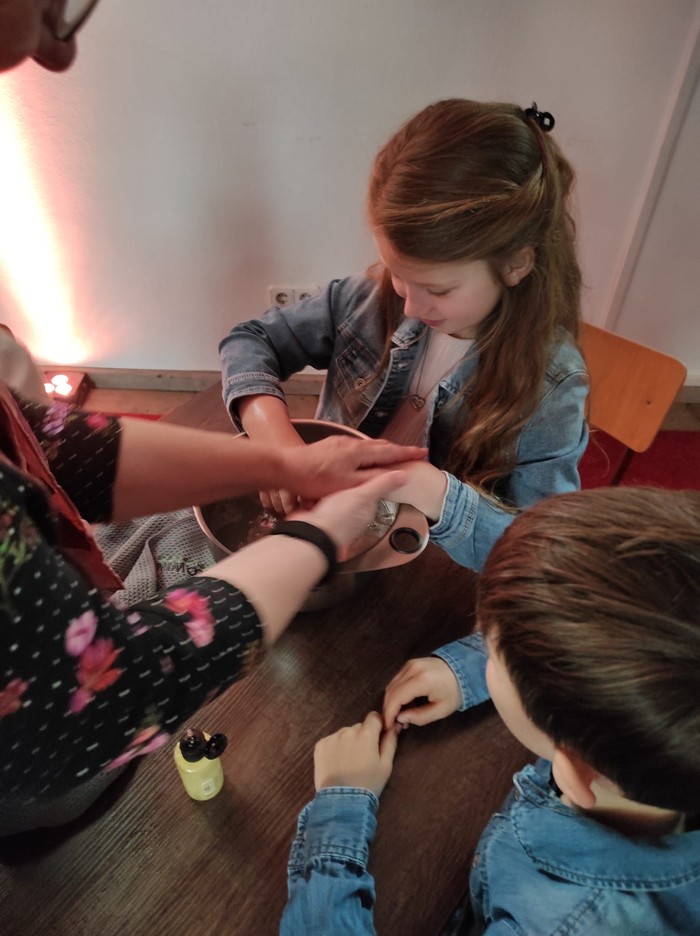 Im Mittelpunkt standen die Kommunionkinder aus Sargenzell. In einer symbolischen Handlung wurden ihnen die Hände gewaschen – ein Zeichen der Gemeinschaft, der Wertschätzung und der Hinwendung zum Nächsten, das die Bedeutung der bevorstehenden Erstkommunion unterstrich.